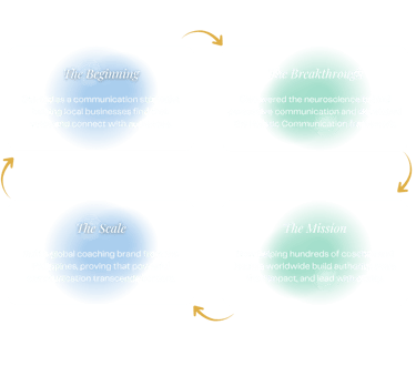 Today, I help hundreds of coaches, entrepreneurs, and corporate leaders worldwide master the art of communication that builds businesses, closes deals, and creates lasting impact.